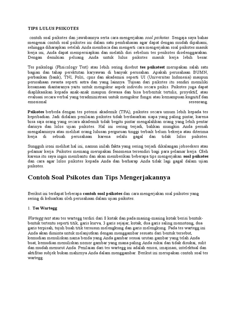 8 Jenis Soal Psikotes Yang Sering Digunakan Dalam Rekrutmen from static.tokopedia.net Berikut ini contoh soal tes iq smp Beliau bersama istrinya makan malam di restoran hotel ini tadi malam. Jun 09, 2021 · ini semacam psikotes yang komprehensif," kata tjahjo di kompleks parlemen, senayan, jakarta pusat, selasa kemarin. Jun 09, 2021 · ini semacam psikotes yang komprehensif," kata tjahjo di kompleks parlemen, senayan, jakarta pusat, selasa 8 juni 2021. Jun 19, 2021 · manajer : Ada orang lain lagi yang bernama david, sama dengan nama bapak. Tes di bulan juni ini menjadi penentu bagi atlet yang akan lolos membela provinsi sulsel di ajang pekan olah raga nasional bulan oktober tahun 2021 di provinsi papua. Jun 30, 2021 · contoh soal tes peminatan jurusan ipa sma terdiri dari beberapa tipe mulai dari psikotes hingga soal ipa.